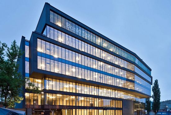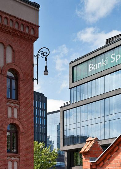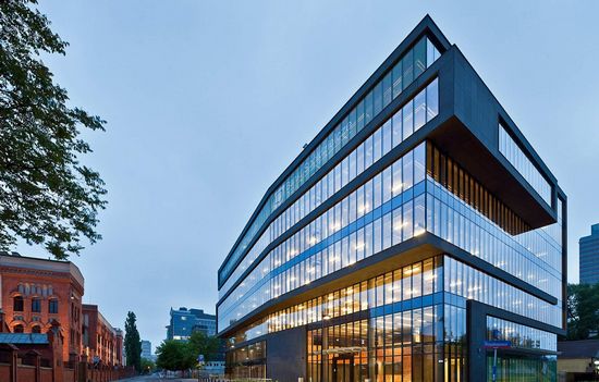 办公楼位于WOLA工业区的中心位置,和华沙起义博物馆相邻。共有七层楼,是A+办公楼,其艺术和形态都是建筑设计的新标准。现代玻璃和玄武岩立面是在表达同一时间前卫和适合在工业环境。