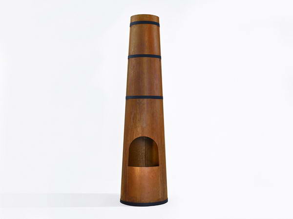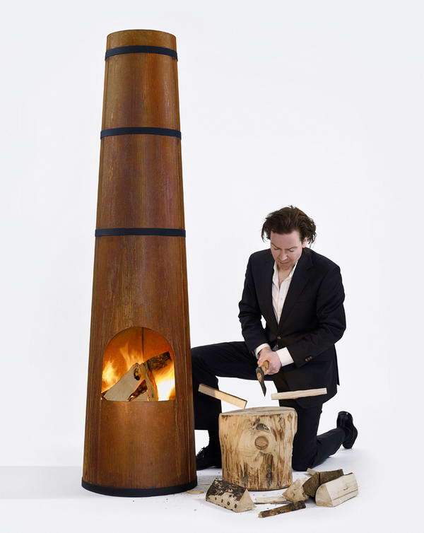 烟囱曾作为一种进步的标志成为各地区的地标性建筑物——它代表了一种工业进步——荷兰设计师frederik roije将高大的烟囱缩小,将它设计呈一个园艺加热器,为家庭带来温暖、光亮和安宁。这个设计用考顿钢制作,创造了一种独特的外形之感和功能(金属表面会自然锈蚀然后生成一层保护膜),“smokestack”在荷兰制作,是一个理想的夏日户外火炉。