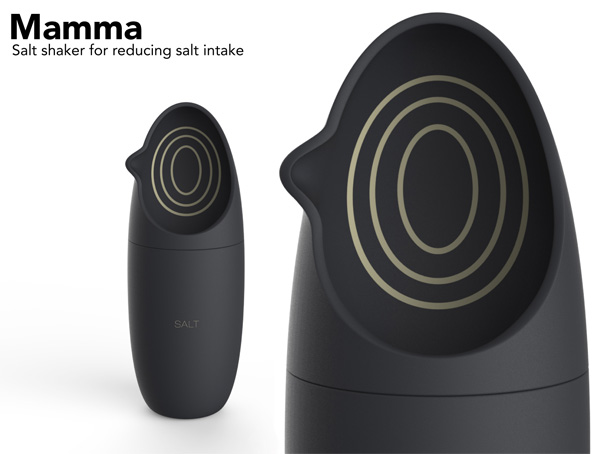 这个设计类似设计之窗发现以前介绍的“sogum huchuhuchu”,设计思路完全一样,只是造型不同而已。“Mamma”设计感很强,其功能就是一个简单的盐瓶。不小心手一抖,会在食物上倒入很多盐,此设计可以将盐先入勺状部分,再按需将盐倒入食物中,设计旨在减少盐的摄入量。