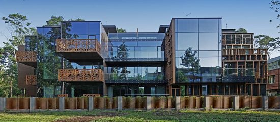 尤尔马拉历史建筑代表古典Eclectism,新艺术运动和民族浪漫主义,以及一些功能特性。然而,该架构 - 主要住宅 - 已经适应了尤尔马拉的规模和气候。因此,尤尔马拉的木结构建筑是优雅的、通风的,并且包括很多细节-- 雕刻花边、小塔、风向标、阳台和彩色玻璃窗。新的三层高的公寓大楼位于在Dzinaru prospekts32 - 尤尔马拉中心。该场地位于街对面的海滩,与一个公园相邻。
