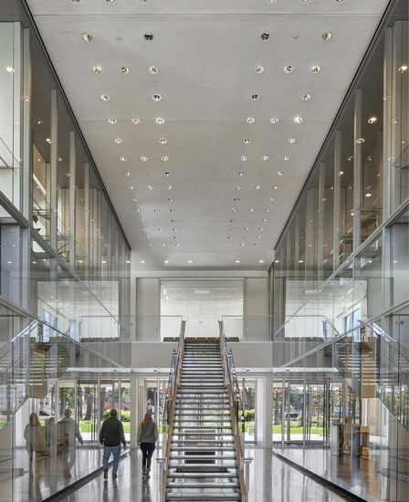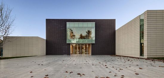威林博物馆醒目地安放在一个角落里,穿过对面艺术历史部门和未来剧院和工作室艺术大厦的草坪可到达。艺术建筑的集合围绕一个由 Reed Hilderbrand Associates设计的重建池塘,将创建一个新的艺术四合院,帮助开发学院校园两端之间的视觉和行人的连接。与教师、 Machado及Silvetti Associates密切合作开发了一个设计,将博物馆访客直接从校园的通路和室外雕塑区,通过一个巨大的两层玻璃归档大厅引进,展示学院独特的收藏。