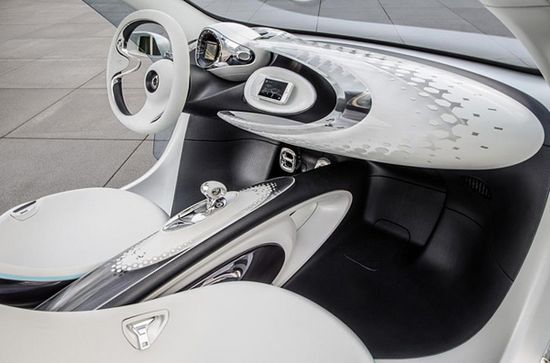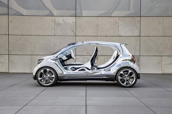 smart fourjoy概念车以新一代smart原型车的身份发布,可以预览下一代fortwo和forfour的设计理念。该车前脸与for-us概念车十分相似,前大灯加入LED光源。整车外观更为灵动,而内饰部分的设计也是极具未来感。新车最多可以搭载五名驾乘者,并提供灵活多变的载物空间。