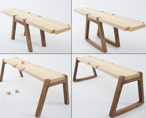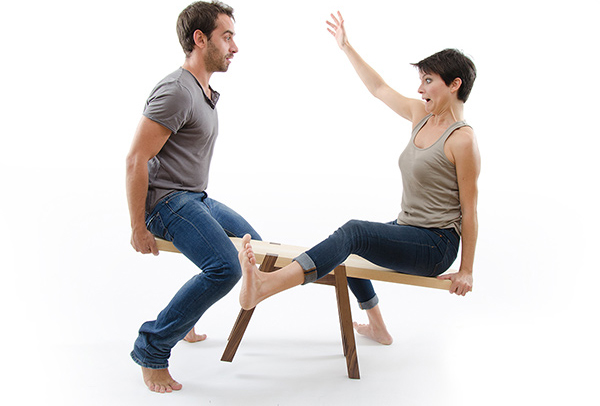有的人坐板凳希望稳定,有安全感。有的人坐板凳希望不稳定,有趣味性。如果这两者结合起来又将会怎样呢?安德里亚设计的这款跷跷板成对长凳巧妙的运用改变板凳腿位置的方法,将跷跷板,摇椅和长凳结合在了一起。用插接的方式,将腿插在坐板的凹槽内,因为是斜向受力,所以能够很好的固定,又便于拆卸,十分的方便。
