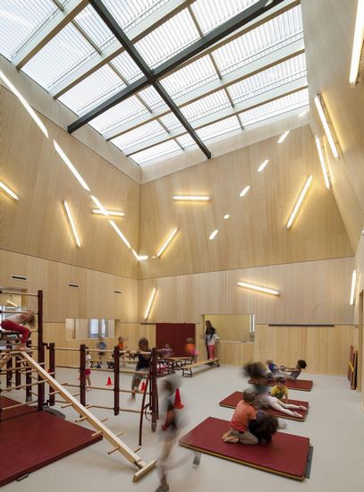21世纪的学校需要满足的一长列的要求,其中一些在最初似乎是矛盾的。它需要的性质和功能在社区内作为一个固定点。它必须是灵活的、多功能、节能的、可持续的、经济的,并且有可能在短短几个月内建设完工。不可能?事实上,这是最近完成的整体式儿童中心,位于阿姆斯特丹,由studioninedots设计。该大楼在11月29日正式投入使用。 在未来几年阿姆斯特丹市有挑战的许多新的发展领域,提供足够的设施包括zeeburgereiland项目。我们决定创建一个紧凑的建设有一个强大的核心构成的综合儿童中心的所有功能之间的连接。