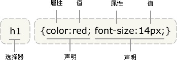 h1 {color:red; font-size:14px;} 下面的示意图为您展示了上面这段代码的结构: