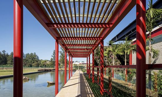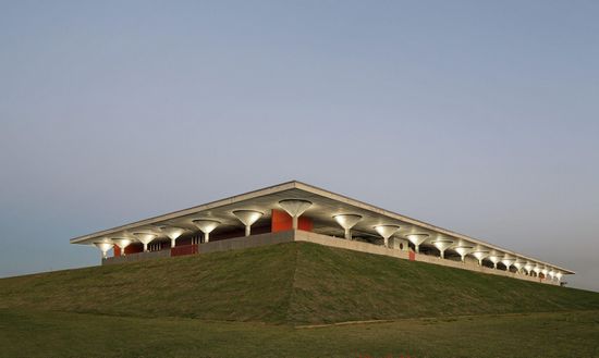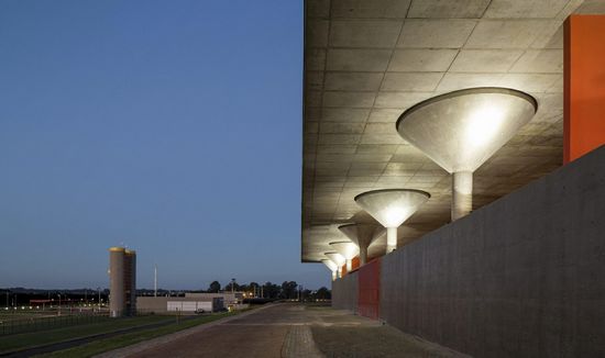 Santander银行数据中心位于圣保罗州Campinas市,旁边是坎皮纳斯,坎皮纳斯大学的校园。该地块,占地700000平方米,包括三个独立的、自治的“数据处理中心”相距约500米远,出于安全的原因,经营策略。 每个单位的面积约25000平方米,分布在三层,其中两个部分是地下的。每个建筑物矗立在景观由于开挖工程,它选择了利用土地建设中移除,并把它放回到曾经的结构已经完成。运行控制中心或“NOC”,坐落在一个战略位置的数据中心的操作,使操作访问它的所有部分。 由两个相互依存的空间,第一个住房接待,工作室与服务,是一个纵向的建筑位于一个大用混凝土和石头长墙垂直结构之间的关系,通过工作区形成一个内部的花园的访问,与受保护的访问安全系统计数。