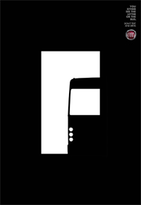 自2013年1月起,One Show就开始与已经有26年历史且全球最负盛名的底特律北美国际汽车展进行合作,为汽车行业推出行业内的汽车广告奖项,经过全球的提名、票选和最终评选,在车展开幕式主会场隆重发布了二十五年来全球最佳汽车广告。 2014年1月13日,在今年的底特律北美国际汽车展上,One Show携全球年度汽车广告奖再次盛大回归,向平面及户外广告、电视广告、网络视频、互动广告与体验式广告五大类别评选出了年度最具代表性的广告作品。The One Club通过采访每项获奖项目幕后的创作者,了解了这些作品的创作历程与创意故事。点击视频,即可马上浏览获奖作品并了解汽车品牌如何脱颖而出。 年度平面/户外广告Print/Outdoor Fiat "Letters" Agency: Leo Burnett Tailor Made/Sao Paulo 菲亚特“字母广告” 代理公司:圣保罗,李奥贝纳定制广告公司