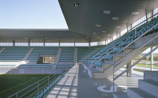 足球场上有一个基本的和明确的目的:举行足球比赛。今天的足球场是一个为城市的某些标志性的潜能运行。它不仅有定量的尺寸。它也有定性。球场的在很大程度上只是偶尔使用。显然,这是在浪费空间。 该方案的基本思想在于它是一个基础设施更是一座建筑。该项目提出了周边办公室和其他公共日常设置在首层,所有的设计作为一个城市的“展示”从街上直接访问。体育场内部非常的空旷宽敞,除了体育项目,各种公共活动都可举行。