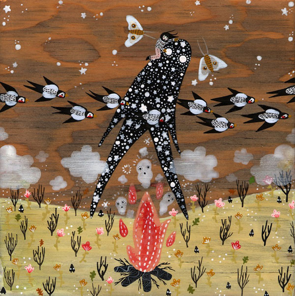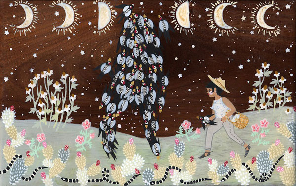 在Aretmisa的画中,一个共同的主题就是生命。在她天马行空的想象中,无论是丑陋造型的怪物、植物、人类,所有一切都是敬仰自然、热爱生命的,而生命和死亡紧密相连,人们怀着敬畏虔诚生活,也安静等待生命的结局。