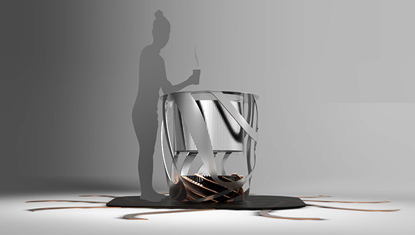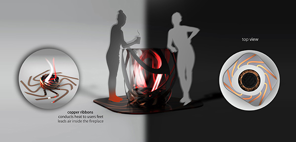 这是Leu Aurelian设计的一款结合审美和功能的户外壁炉设计,它采用了现代的燃木设计,区别于传统的火堆,允许用户依靠和接触它使身体获得温暖。它内部的螺旋气流旋转系统可以制造虚拟的火焰,向外扇风的铜条扇可以将温暖送到用户的身体各处。与传统燃料相比,它不会产生烟或者其他燃烧气体,用户不需要烟囱,就可以在户外获得温暖和清新的空气。