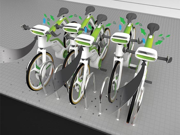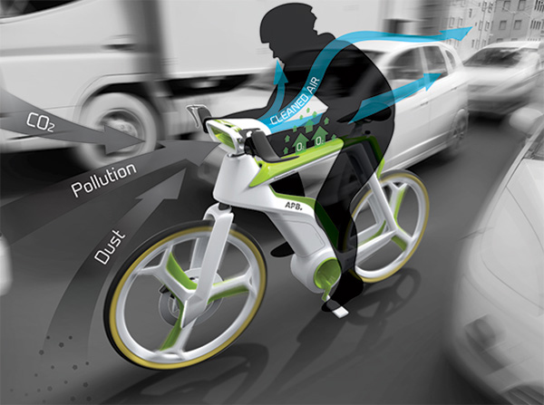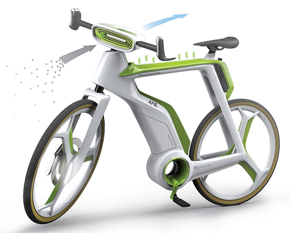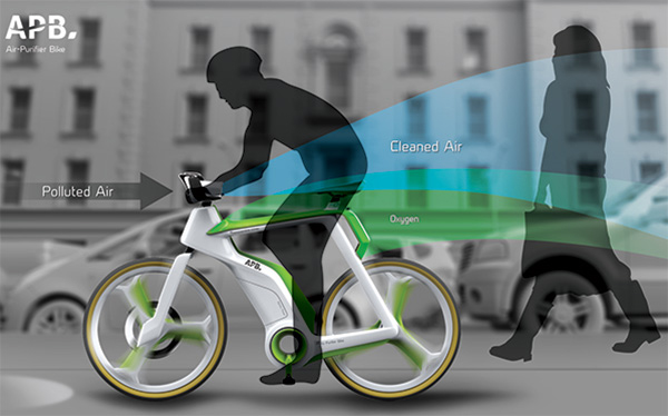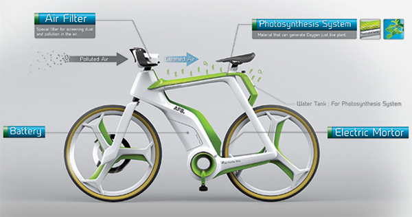 现在我们的环境正在不断的被破坏,虽然我们都知道要保护环境,但是在生活中落实到行动中,为此,Silawat Virakul等人设计了这款净化空气自行车。骑自行车是最环保的交通方式,然而,骑这个净化空气自行车可以净化城市的空气,从根本上解决空气污染问题。这个设计集成了户外空气净化器的设计,在你骑它的时候,就可以吸收被污染的空气,然后从后面放出过滤后的清新空气。同时,它的里面镶入了水箱,可以在你骑车的过程中产生氧气。它还包括电动马达,当你不骑它的时候,它可以进行光合作用,继续为改善城市空气质量出力。
