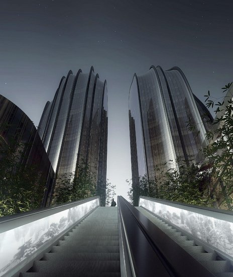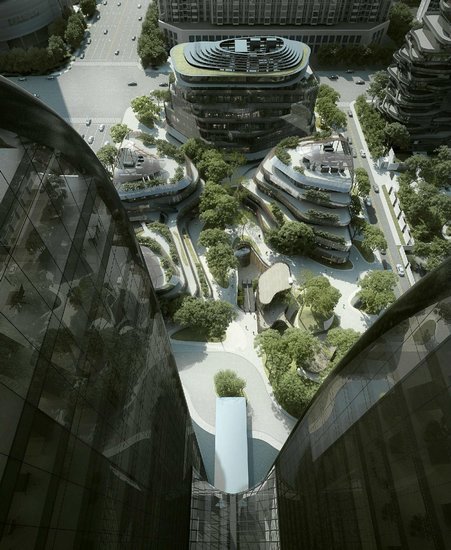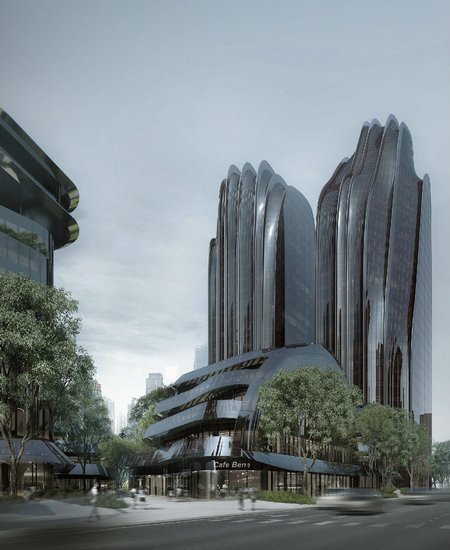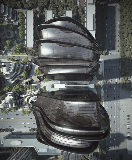 该项目是由MAD设计的,位于北京最大的公园和中央商务区--朝阳公园广场。延续了马岩松“山水城市”的理念,将自然引入城市境界,在混合使用复杂的重新诠释中国传统绘画出当代自然形态的“城市风景”。