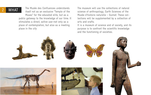Graphéine是法国巴黎的一间平面设计公司。在Musée des Confluences博物馆,现在与未来、已知和未知被空间布置所诠释,试图“刺激公众的好奇心”。作为岛屿最南方公园的延伸,该项目不仅是一个新的城市空间,还是一个包含斜坡和曲面、内外融合、最终形成一系列动态空间变化的景观。