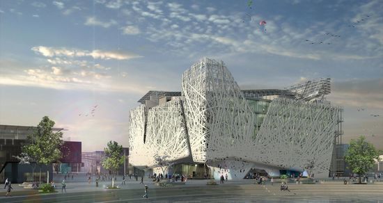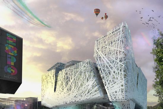 罗马建筑师nemesi和他的合作伙伴设计了一个13000平方米的“城市森林”,将作为2015米兰世博会的意大利馆。外观是一个复杂的、枝状的皮肤,六层的晶格结构由900个面板组成,“捕获”空气污染物,并将其转换成惰性盐。 在净化周围的空气中,展馆也将产生光伏玻璃安装能源。今年,随着固体和空隙的外部活动,将照亮在室内广场将作为入境游客的主要点。在这里,游客可以访问四个连接块,将设有展览、礼堂、办公室和会议区。意大利馆将成为世博会建造的几个永久性建筑之一。
