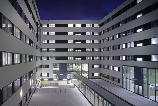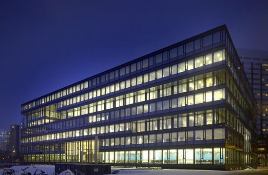 该荷兰KPN电信公司办公楼位于阿姆斯特丹Sloterdijk,其特点是单调、不明确的办公体量。本次KPN公司设计提出了在城市结构内创建一个独立的、但其动态的一个建筑体量。建立一个灵活、可持续的建筑,拥有最最佳的日光,是项目最初的主要目标。
