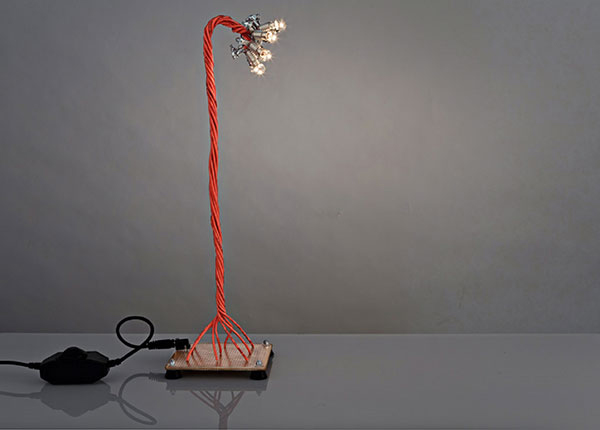 很多人看到这个台灯的时候都会认为它是一个还没有完成的产品,因为它的电路板和电线还裸露在外面。但其实它是一个已经完成的作品,它是Shahar Katsav设计的赤裸裸台灯。这个设计最大的特点就是将大部分应该被包裹的组件裸露在我们的视野之内。同时,它的八个展开排布的灯泡看上去非常的张扬,是一款非常有个性的设计。