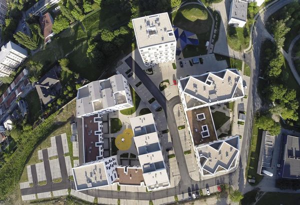 新地区的体系结构是基于简单、清晰的形状和颜色,但它仍然尊重每个房屋的独特性。这种独特性首先在一楼成为房屋的微分器,而在顶部缩小楼面面积,对应于不同类型的公寓提供宽敞的阳台和视野。 Nova terasa综合住宅位于20世纪60年代的典型建筑的附近,我们有典型的城市元素为基础的观念,如街道、广场、庭院。事实上,封闭的庭院成为个该区域的关键要素之一。半私人的空间,定义为特定的用户,它为一个新的社区中心,形成愉快生活的一个重要元素,以及为儿童和成人放松活动的受保护区域。它包括一个小操场、绿化与休息的地方。
