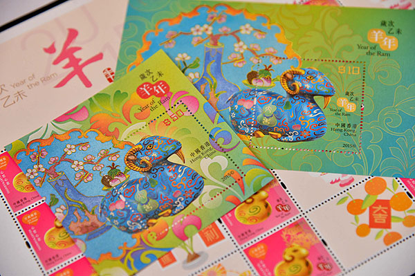 新春将至,香港邮政将于本周六推出羊年特别生肖邮票。设计师靳埭强继设计蛇及马年的邮票后,以羊的工艺品为题材,设计出吉羊贺岁的主题邮票,并以清代景泰蓝工艺品为设计理念,首次推出丝绸小型张。