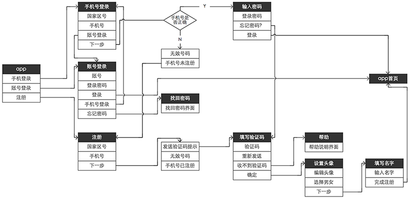 如何利用起这样的界面单位来画流程,下面以一个app的登录注册为例: