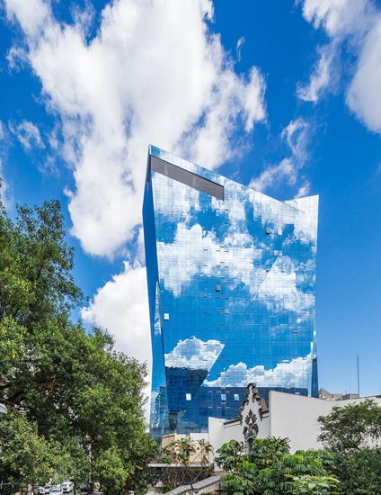 这是一栋可持续的高层豪华住宅项目,该项目于3月完成,这是Libeskind在美国南部的一个项目。 该项目的外立面采用光亮的玻璃幕,高端层住宅项目位于圣保罗的 Itaim Bibi区,在城市主干道附近,很方便的访问Ibirapuera和Do Povo公园。大胆、雕塑的设计通过镶嵌的阳台展现了多元化的玻璃立面,整个立面形成一个节奏模式。
