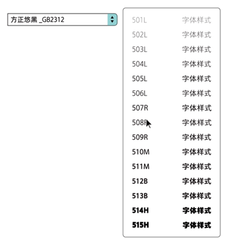 2. 方正悠黑家族字体众多,子菜单的引入更便于设计师检索和应用。