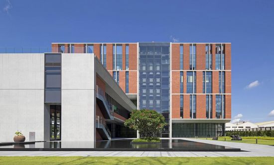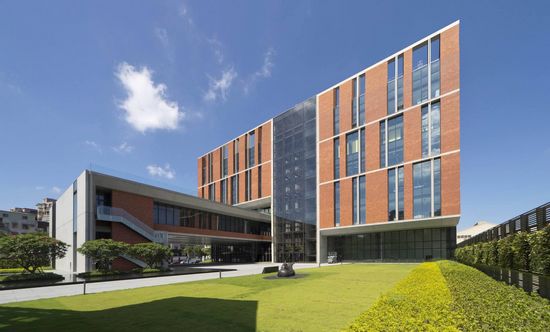 研华科技园包括四座建筑,分三期建成,第一阶段:办公建筑和智能温室大棚;第二阶段:制造和分销中心;第三阶段:创新研发部和员工娱乐中心。项目创建一个中央庭院,从后方区分前方,强调建立一个铰接式、不同于其他典型的工业园区。