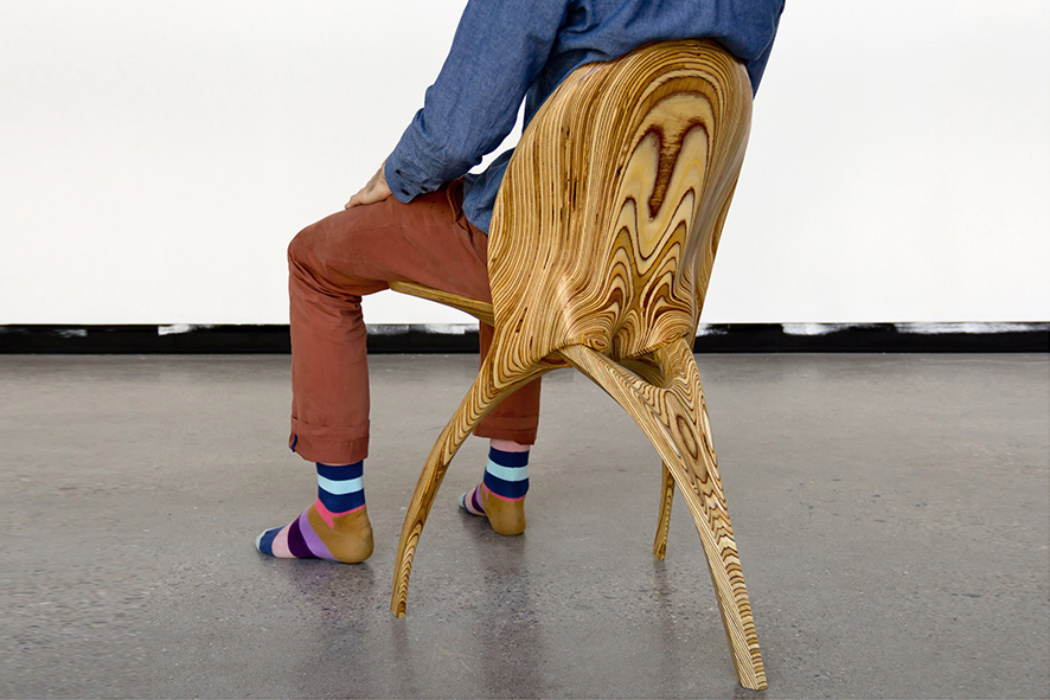 设计师Ammar Kalo设计的一款三条腿的木纹座椅。日常生活中的座椅普遍都是四腿构成,其实三腿座椅依然稳定,并且减少了木料的浪费。它由两部分简单的构建组成,平时不使用时,可以把它们折叠起来,以节省空间。试想如果把它们差分开来,每一部分都可作为一个雕塑品存在。