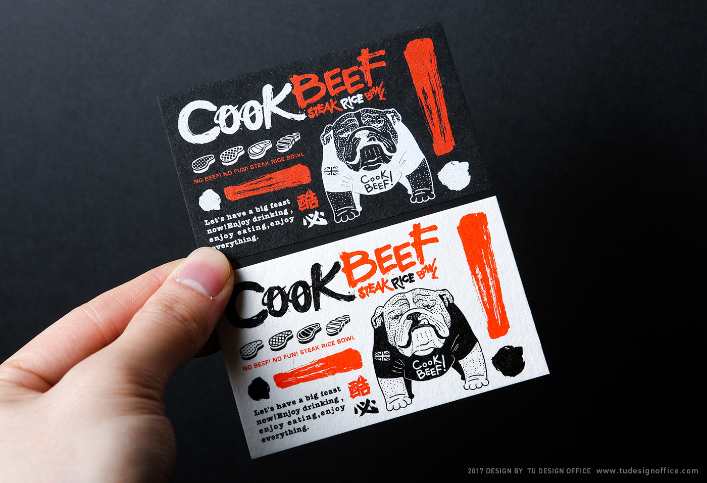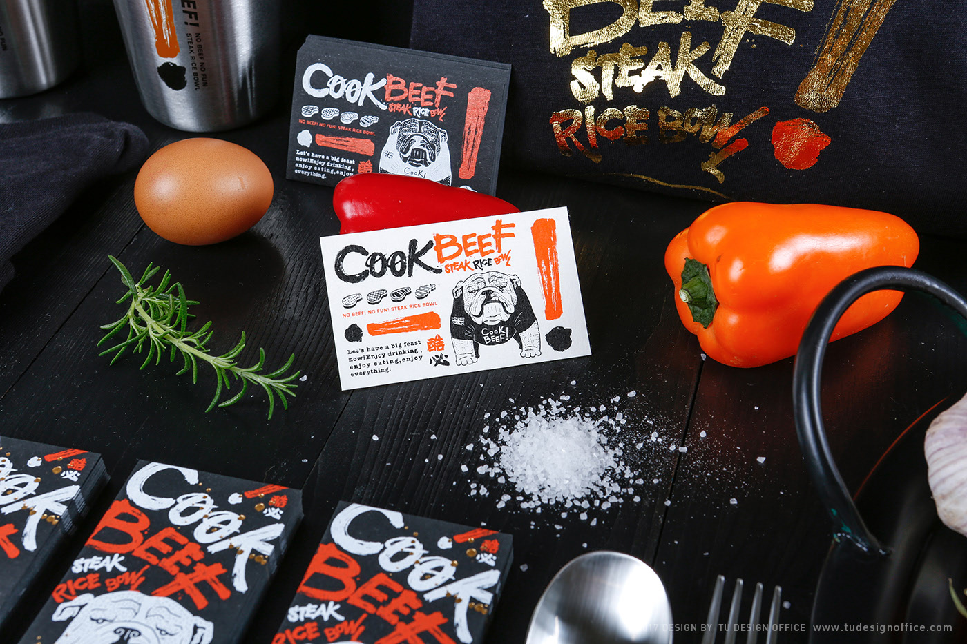 “CooK BEEF!”是由Wowprime设立的新餐厅特许经营,其特色是“牛排饭碗”,融合了西式牛排和东方米饭,由真空烹饪烹制,带有一丝创意。 该特许经营提供时尚,创意,精致,热情,经济和高品质的用餐体验。 为了创造一个充满激情和时尚的品牌形象的视觉设计,我们使用书法字体进行标识设计。 使用感叹号等符号,我们创造了数十种鲜艳色彩的单词组合。 最终,我们将书法与精巧的手绘插图相结合,营造出街头时尚的视觉感受。 我们希望创造一个高品质的“CooK BEEF!”视觉设计,创造一种精致和精致的自由感,并强调“时尚,创意和复杂”的品牌价值。