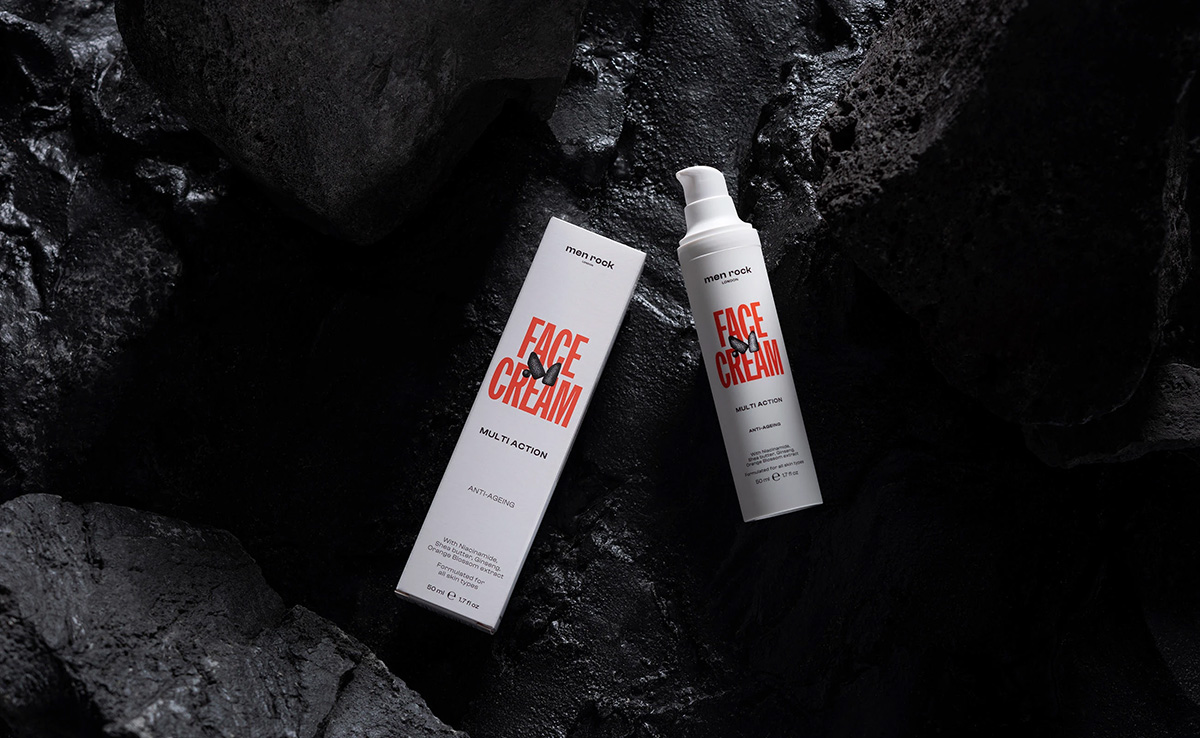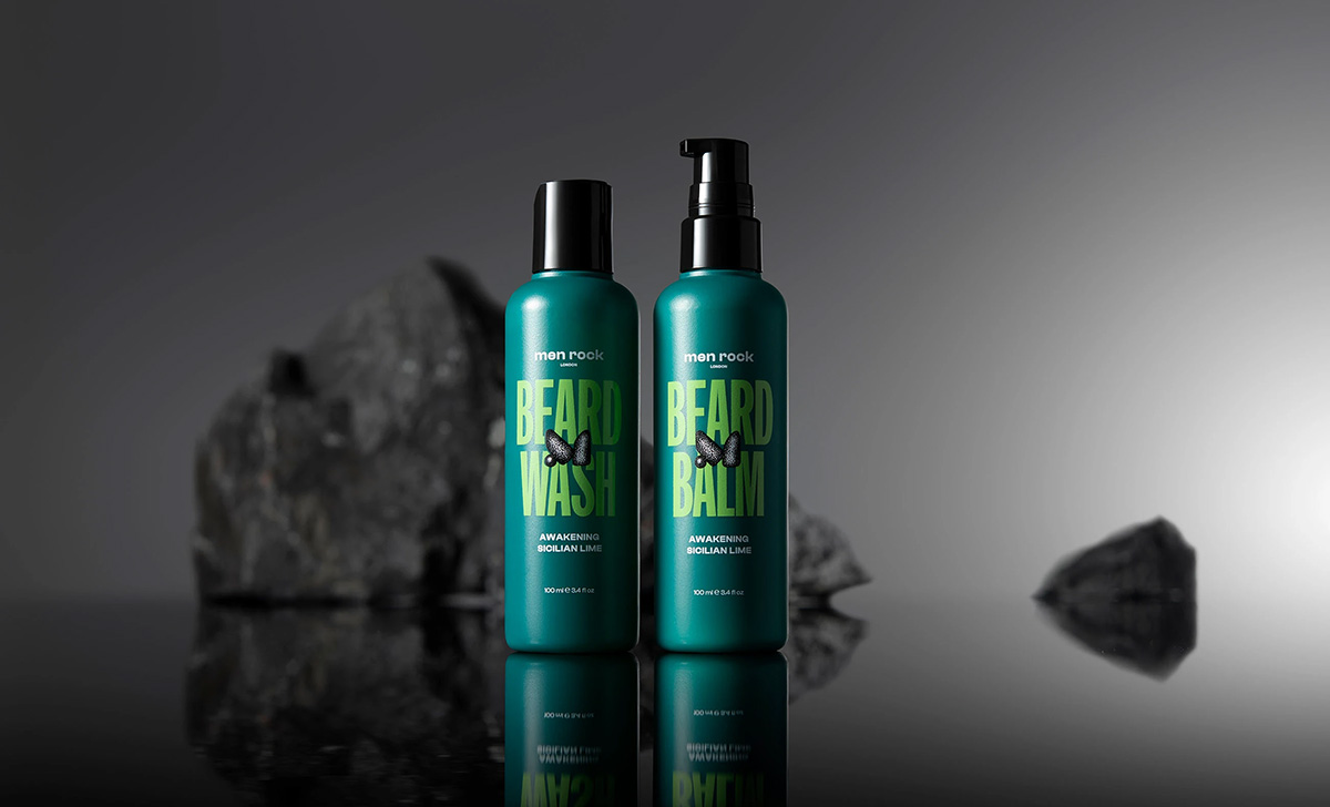 Men Rock 是一系列优质易用的男士护理产品。这个品类充斥着各种品牌,要么过于普通,要么故作高深。而 Men Rock 想要传达的是,每个男人都应该拥有更轻松愉悦的护理体验。就这么简单。但如何用视觉语言来表达这一点呢?