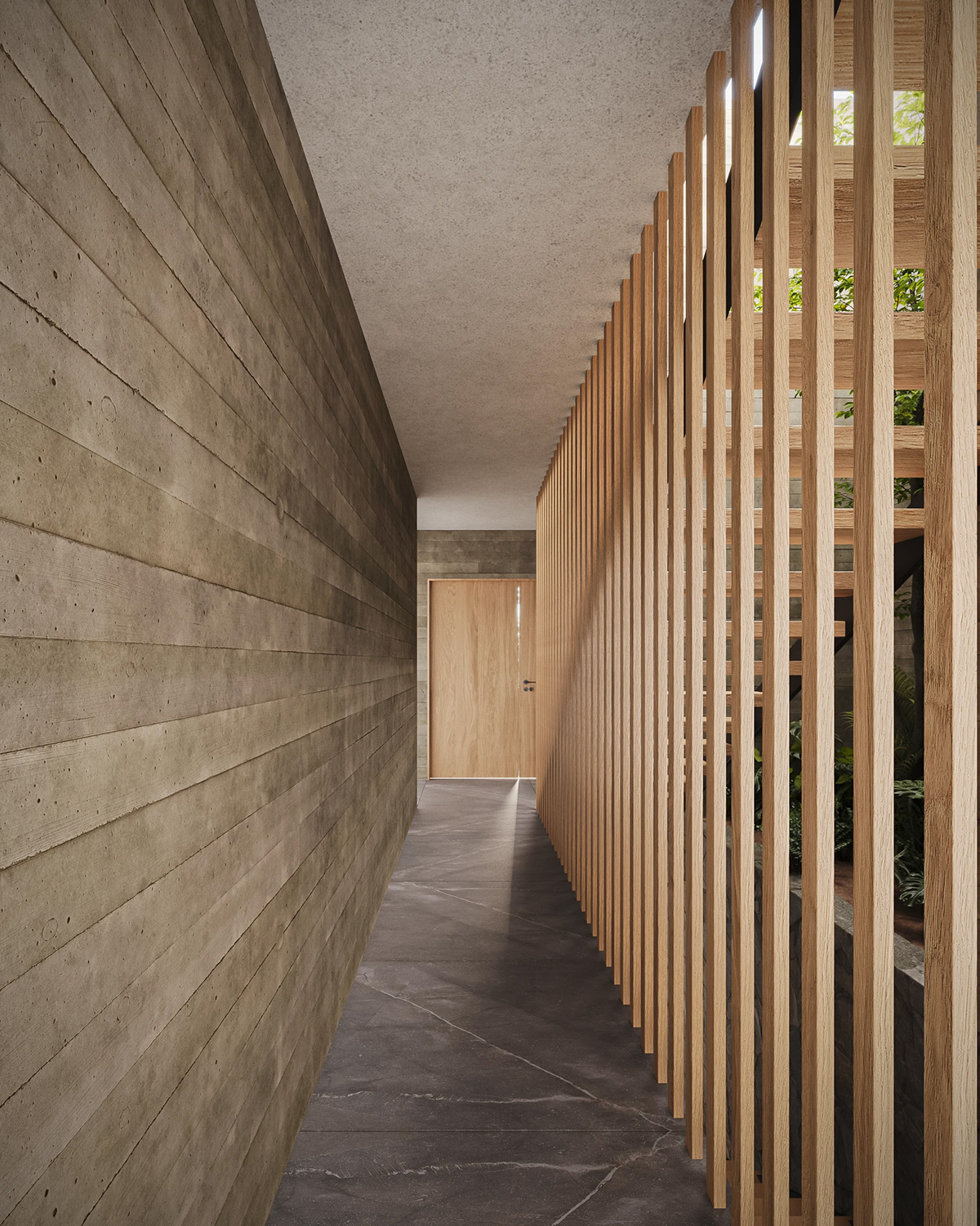 精心布置在建筑体量边缘的植被,柔化了混凝土的硬朗感,并在自然环境与建筑环境之间建立起对话。这些绿色元素打破了建筑结构的僵硬,增添了温暖的气息,将粗野主义的庄严感转化为更加亲切宜人的体验。
