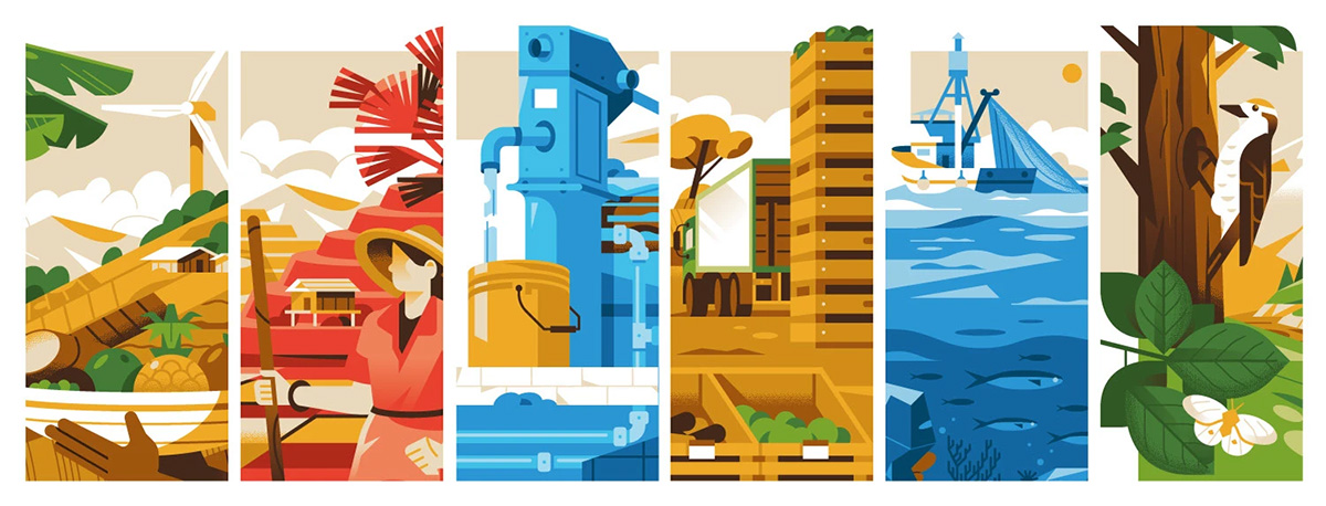 2025年9月,粮农组织在日内瓦发布了题为《粮食和农业相关可持续发展目标指标进展追踪报告》的报告。该报告概述了在2030年最后期限前五年,世界在消除饥饿、保障粮食安全和实现可持续农业等关键目标方面取得的进展。我有幸参与了这项重要项目,并负责绘制插图,这些插图由才华横溢的马泰奥·戈伊(Matteo Goi)制作成动画。动画效果震撼人心,生动地展现了各项可持续发展目标取得的进展。