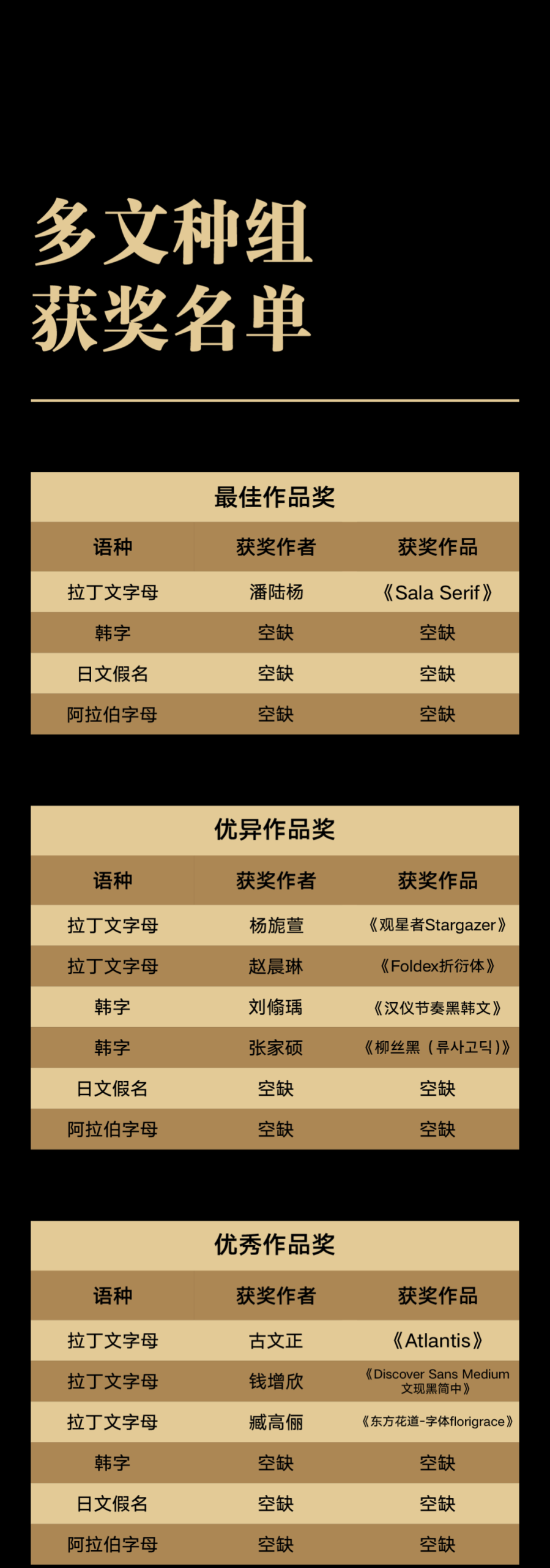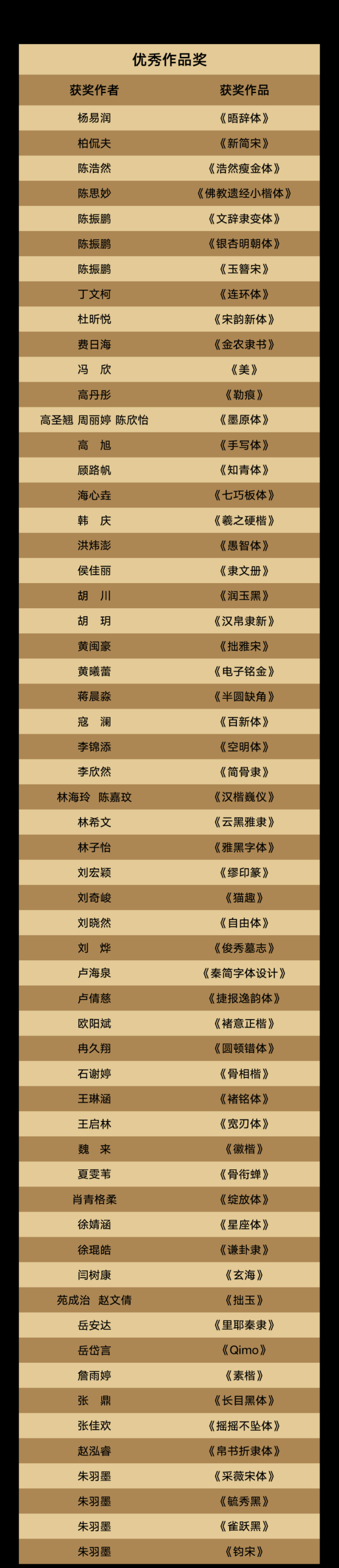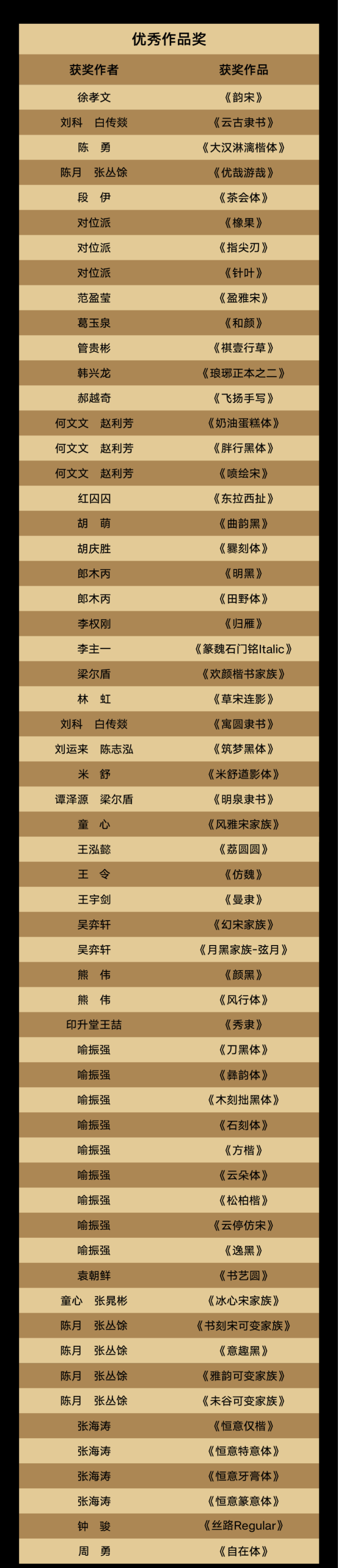 汉仪第六届字体之星设计大赛获奖名单公布
