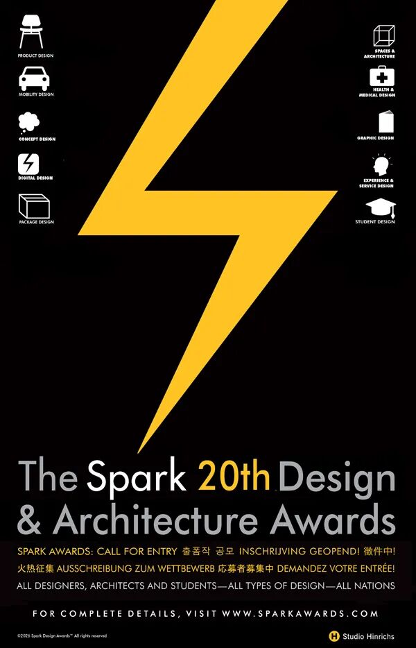 美国星火国际设计奖 Spark Design Awards 设立于2007年,每年举办一次,2026年是奖项举办的第20届,是全球涵盖范围最广、专业化水平最高、且影响最为深远的设计奖项之一,欢迎各行各业专业人士以及在校学生积极参与,旨在推广优秀设计和才华横溢的设计师。Spark 是一个由设计师和创意人士组成的社区,他们因 "设计能为世界带来积极变化 "这一理念而联系在一起。