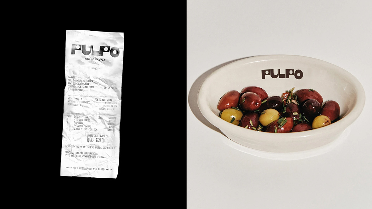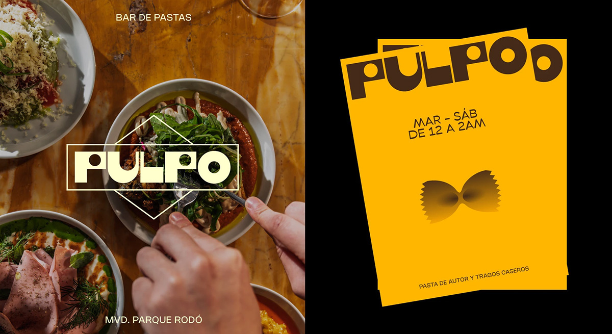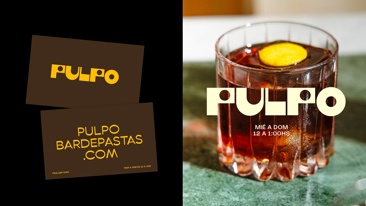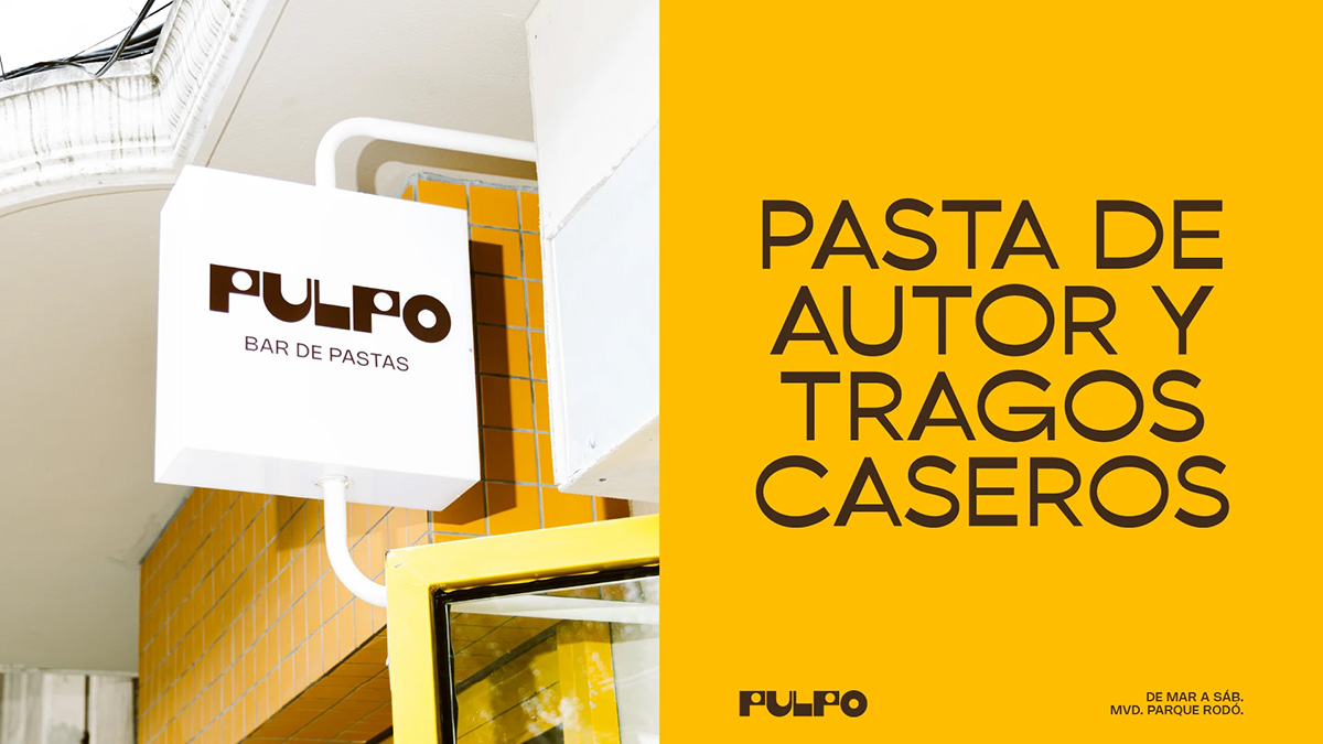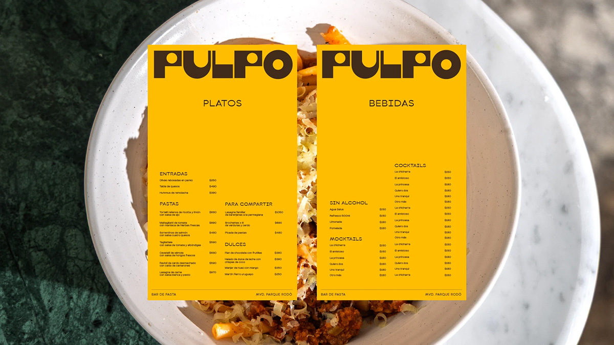 Pulpo 是一家位于乌拉圭蒙得维的亚罗多公园的意面酒吧。其自制意面和招牌鸡尾酒是这家店的特色所在。因此,在品牌设计时,目标是打造一种现代简约的风格,同时融入传统酒吧的经典元素。