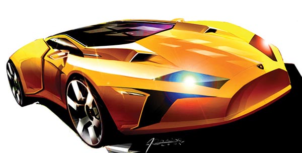 费比•默比里欧的设计重点在复杂的外形上,以此从潜在的竞争对手中脱颖而出。为了让汽车充分体现出野性的特征,尾部的车壳腾起在半暴露的后轮上,车后排气管凶狠沸腾的样子更是体现出了这一特征。默比里欧、鲍格格里和阿尔瓦格尼三个意大利学生赢得了德•席尔瓦和吕克•东克沃尔克的注意,获得了将于下个月开始的兰博基尼项目的实习机会。