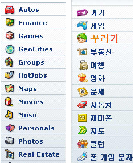 韩版网站的用色更加鲜亮,阴影去掉了,沉重的黑边也去掉了。这些微小的改动,使图标在沉重的方块堆里更突出些。想想把英文站上的图标搬过来会怎么样?