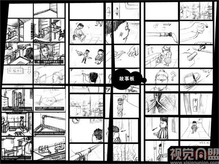 03.分镜故事板——根据文字创意剧本进行的实际制作的分镜头工作,手绘图画构筑出画面,解释镜头运动,讲述情节给后面三维制作提供参考。