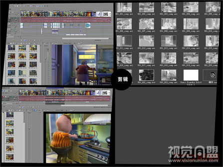 14.剪辑——用渲染的各图层影像,由后期人员合成完整成片,并根据客户及监制、导演意见剪辑成不同版本,以供不同需要用。