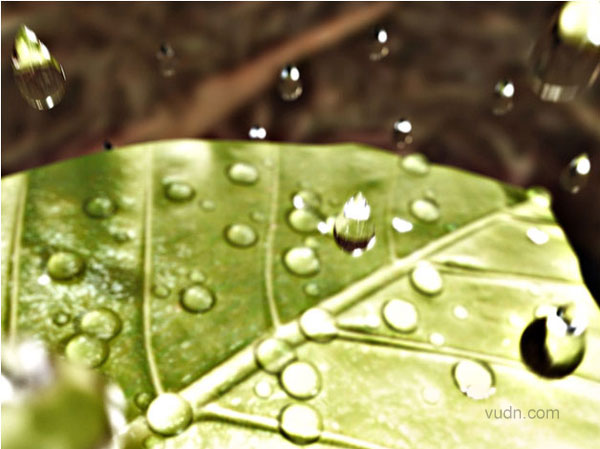 -水珠- 复制并手动摆放在叶面上,场景中有3种形式的水珠:"普通"型、"小"型及"连接"型。