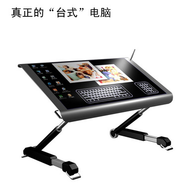 这款作品推出使人联想到了微软刚刚推出的桌式电脑,不过这款作品更富有创意,电脑也是和桌子合二为一,但气动桌脚可以让它轻松的转动折叠,而高强度钢化玻璃面板桌面就是高精度LED屏幕。它可按需要变成茶,桌子,演示板或挂在墙和天花板上。不用时折叠起来可以节省空间。真是合理化应用空间和一物多用的好产品。