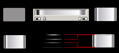 3.锁身:对矩形线性渐变,如图。为了描述锁身上线的光感,故在其上下加了高光和阴影(细看源文件)