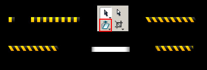 4.黑黄交织的条纹:画出黄色和黑色的矩形,组合,然后克隆多个。。再组合刚画的所有小矩形,选择倾斜工具得右图的黑黄条纹矩形,绘制一个矩形,渐变使得两侧的不透明度降低,把矩形放到刚倾斜得到的黑黄条纹矩形上,选择他们,组合为蒙板。