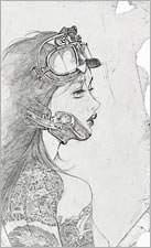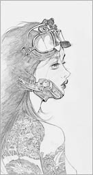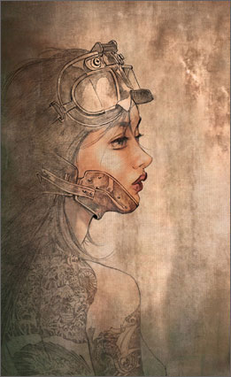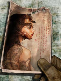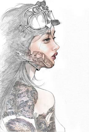 创意 这幅作品是为参加“主人与仆人竞赛”而做的,我想为这次竞赛制作些与众不同的东西。我把它制作的更精细、周密,而不仅仅是二人交互式对话的情景模式。我常 常生活在过去的记忆中,不能自拔,这影响着我在生活中所做的种种决定,于是我希望创作一幅反映这种思想的图画。仅仅描绘我个人的肖像很是单调,我想加入一 些我最感兴趣的事物:二战、女孩和纹身。 勾画 我最初想法只是简单的混合各种元素,来看看会出现什么结果。第一幅草图并不令人满意,它没有表达出我想要的那种痛苦和悲伤感。在第二幅草图里,我添加了更 多的轮廓结构,让女孩仰视天空,让皮肤上有更多空间的纹身。我需要一些装束和头饰来突显局部,我选择了风镜和下巴上的纹身。现在,我对草图比较满意,开始 着手下一阶段的细节充实。