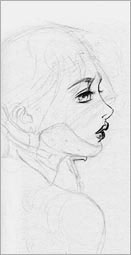 现在我对图片的其它部分进行着色处理,重点描绘下巴和面部。对皮肤的各种元素进行细化,以充实肤色。试着使用不同的色调,并时刻牢记让调色板最小。