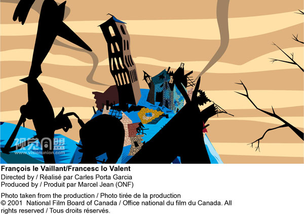作品名称:瓦乐索费力昂 时 长:10分6秒 导 演:Carles Porta Garcia 制 片 人:Marcel Jean (NFB), Patrick Eveno and Jacques-Rémy Girerd (Folimage) 出品时间:2001 内容梗概:作为一支强大军队的首领,黑骑士在每个他到的地方都留下了恐惧与荒凉。率领着一群幸存者,瓦拉索费力昂,一个低微的骑士向黑暗的统治者发出了挑战。