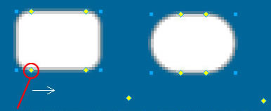 用鼠标拖拽此点向右,使圆角到最大,然后按住Alt不放,分别用鼠标拖拽上方的两个黄点向一旁,使上方的角成直角。