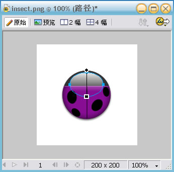 7.别忘了,昆虫的背部也是发光的哦,同样,画一个椭圆,用白箭头工具将椭圆调整至如图形状,颜色#ff00ff,边缘羽化,羽化度25,效果如图11。