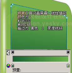 9.接下来用钢笔工具勾画IPOD屏幕,依然线性填充,颜色为:#196332、#6BB24B,描边为 黑色,笔尖大小为 1 ,选择柔滑线段。
