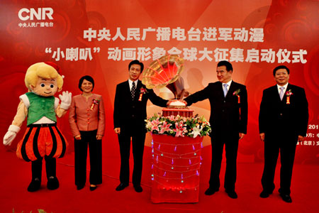 在启动仪式上,有关人士宣布,“小喇叭”及其旗下各品牌正式向全球进行动画形象大征集,参与者可以登陆中国广播网具体查询征集方案,本次征集活动将持续三个月,2011年1月份将进行评选。