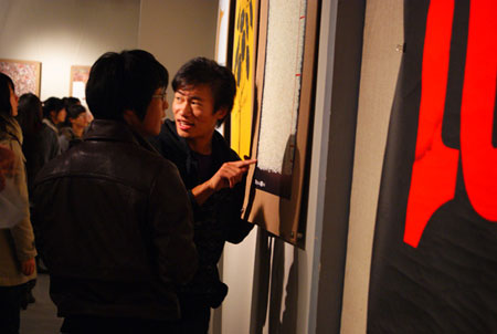 西安美术学院党委书记朱恪孝先生和西安美术学院院长王胜利教授参观展览